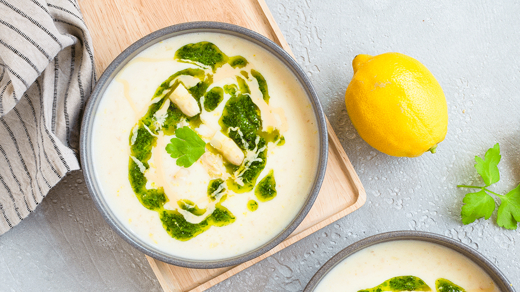 Sie macht dem Königsgemüse alle Ehre: Diese Spargel-Kartoffel-Suppe wird verfeinert mit Mandelmus und Petersilien-Zitronen-Öl. Damit präsentiert sie sich nicht nur geschmacklich königlich, sondern auch dank jeder Menge Vitamine und Mineralstoffe sowie einer Extraportion ungesättigter Fettsäuren.