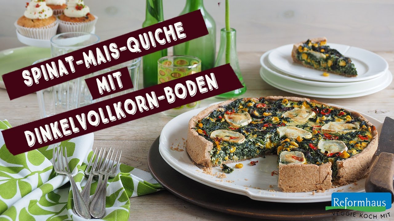 Weiter für den Belag Spinat- Mais-Mischung unter den Guss heben. Alles auf den Mürbeteigboden geben und glattstreichen. Nach Belieben Ziegenrolle in Scheiben schneiden und darauf verteilen. Auf mittlerer Schiene ca. 45 Minuten backen. Anschließend auf ein Gitter stellen und ca. 10 Minuten ruhen lassen. Springformrand entfernen, Quiche gegebenenfalls auf eine Tortenplatte gleiten lassen, in Stücke schneiden und warm oder kalt servieren.