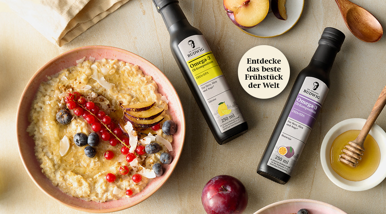 Wir von Dr. Johanna Budwig sind davon überzeugt, dass sich jeder Mensch mit der Budwig Ernährung, auf Basis bester Öle und Fette, mit naturbelassenen Lebensmitteln von innen heraus kräftigen kann. Als bewusstes Gegengewicht zu industriell erzeugter Nahrung. Passend für deine Lebenssituation gibt es Omega-3 reiche Öl-Kompositionen, Leinsamen-Toppings und Porridge Produkte für einen ebenso köstlichen wie gesunden Frühstücksgenuss. Hochwertige, pure Öle bereichern die gesundheitsbewusste kalte Küche.