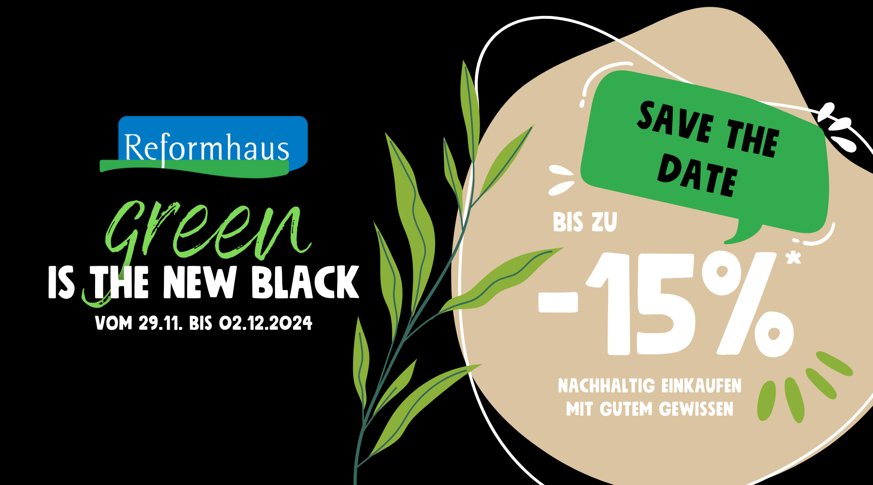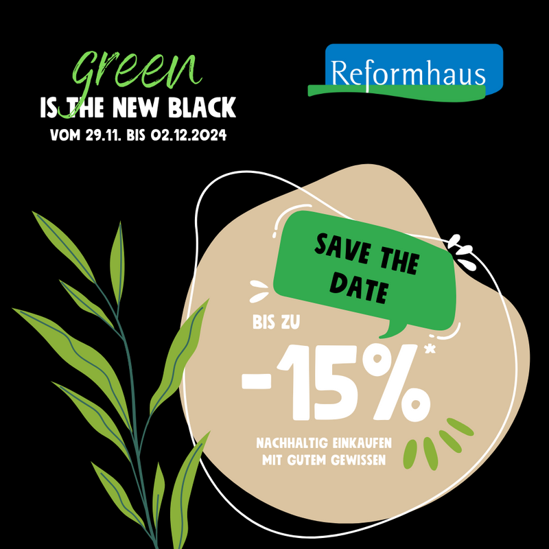 Reformhaus® macht in diesem Jahr auch eine BLACK FRIDAY Aktion mit einem Rabatt von bis zu 15 Prozent auf das gesamte Sortiment*.